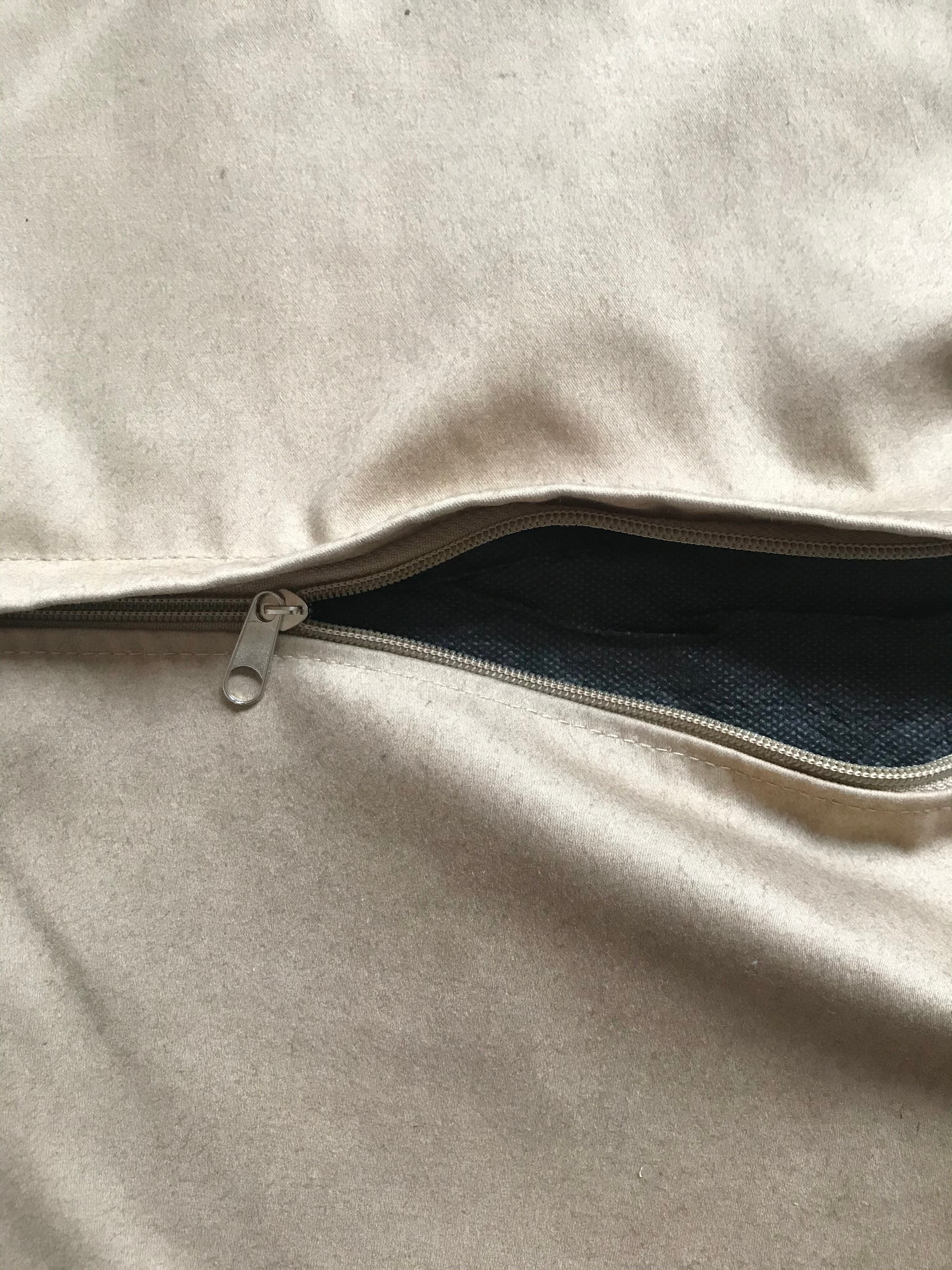 キリムの裏側は、合成繊維の布でカバーされ、裏にはジッパーがつけられています。