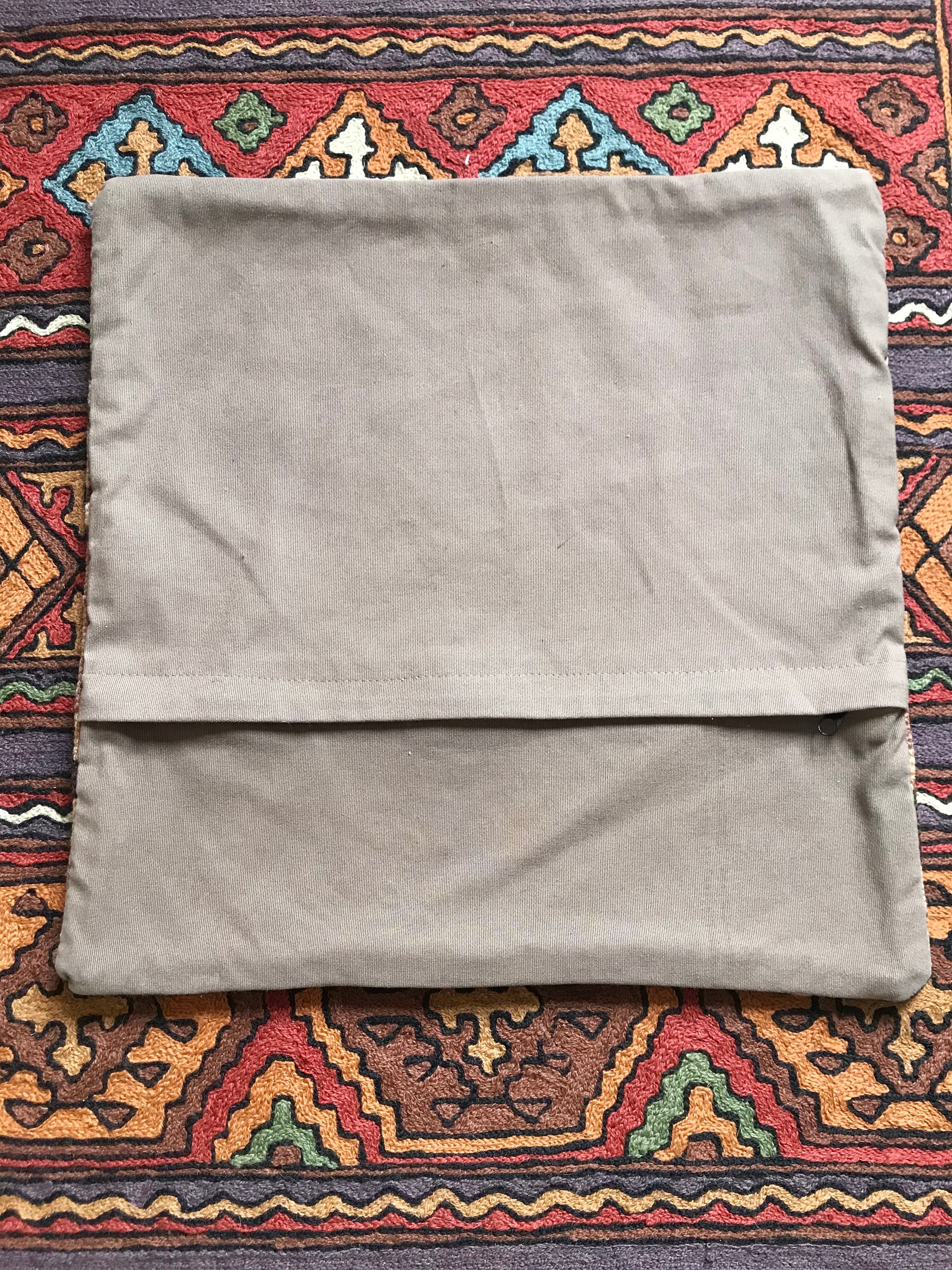 キリムの裏側は、合成繊維の布でカバーされ、裏にはジッパーがつけられています。