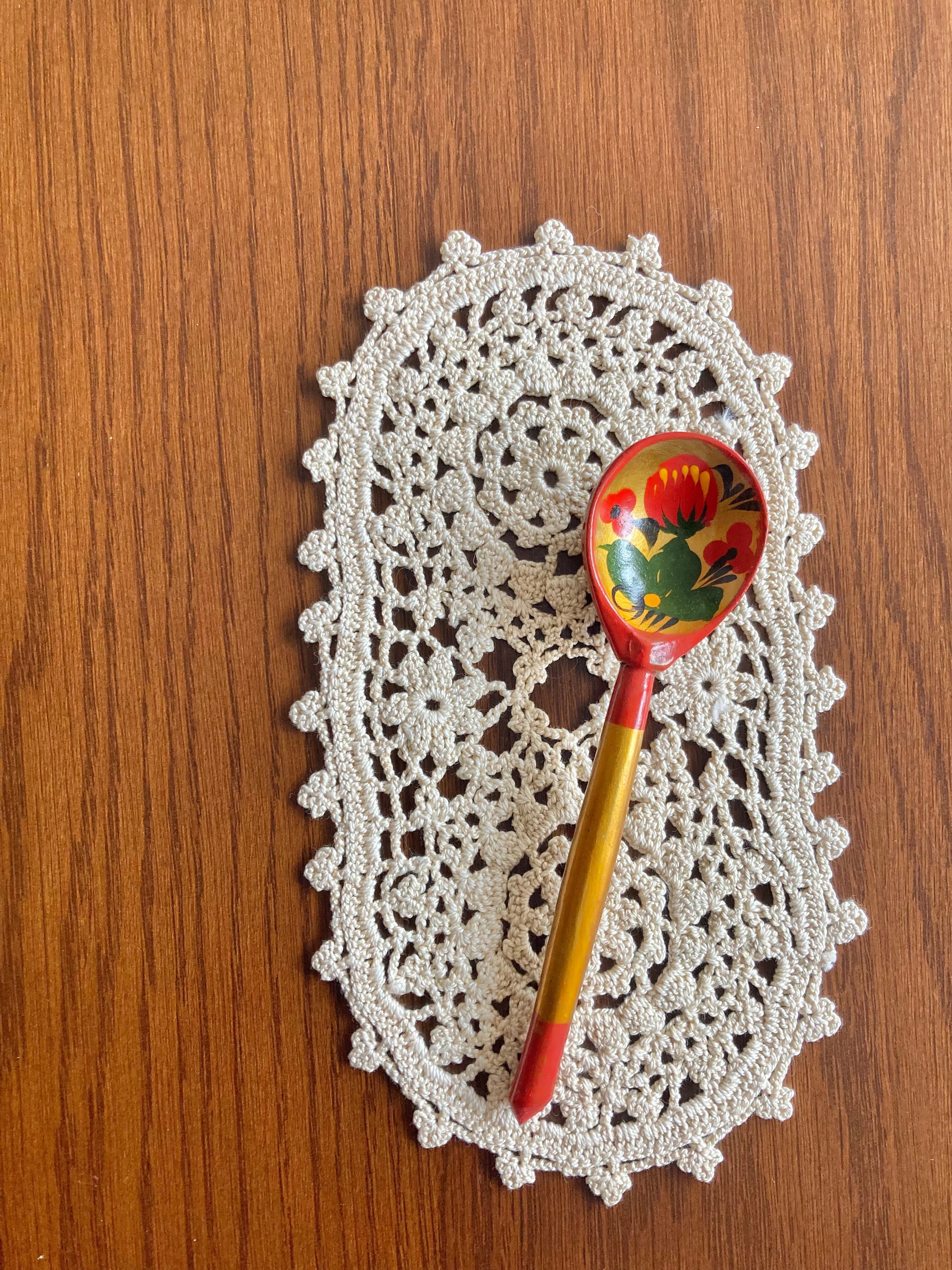 美しい手編みのレースで有名なブルガリアの、現地の女性達の手によって編まれた、アンティークのドイリーです。